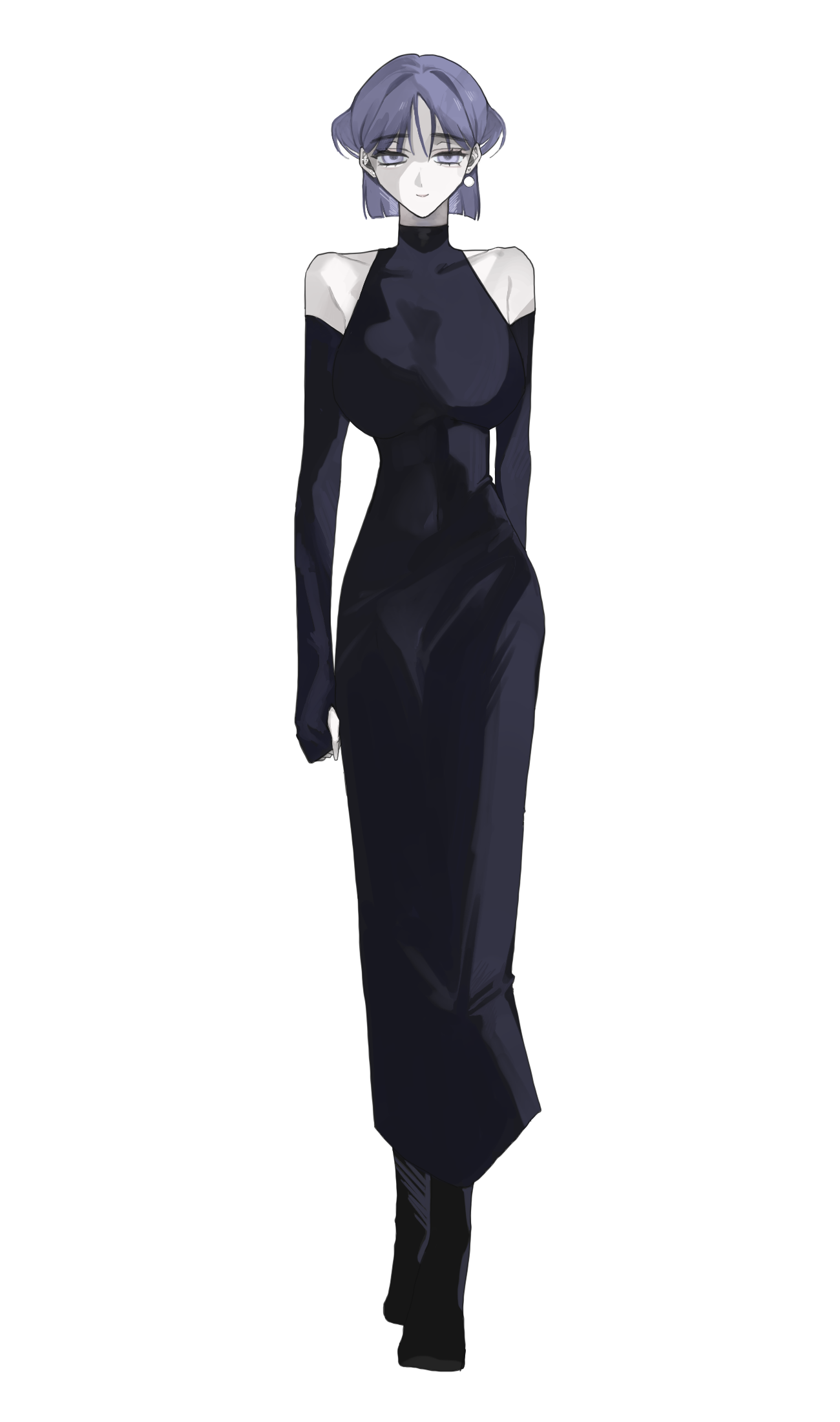 | 의상 | 검은 민소매 슬릿 원피스와 워머 착용. 신발은 5cm 힐의 앵클부츠 착용. 피어싱 (총 4개) 착용. |
